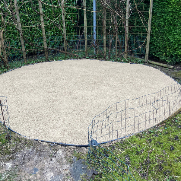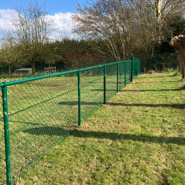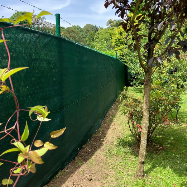Plaatsen van draadafsluiting met prikkeldraad en afschermdoek